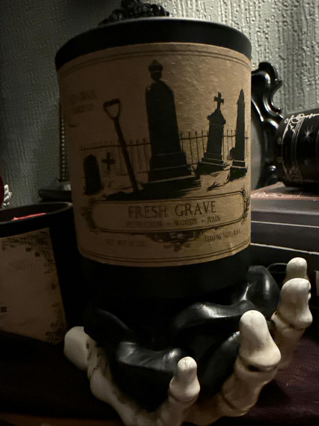 - A short horror story titled Fresh Grave, printed on a 3x3 story card and inspired by the scent and illustration.